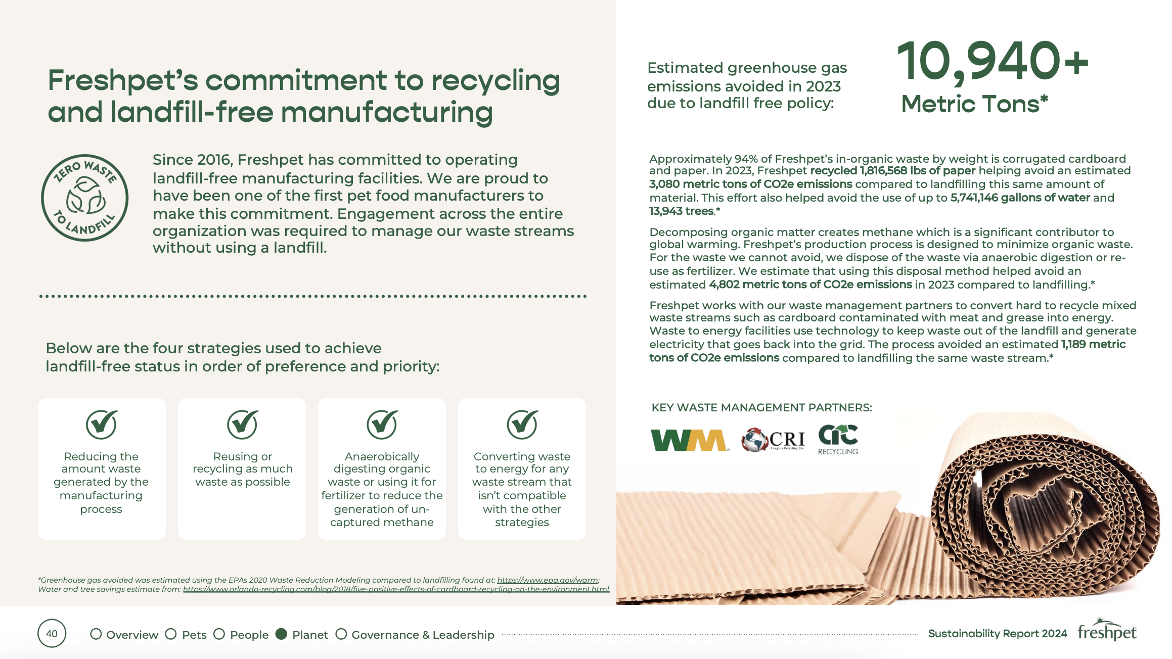 We’re honored to have a continued partnership with Freshpet. Check out our feature in their 2024 sustainability report by clicking the button below!