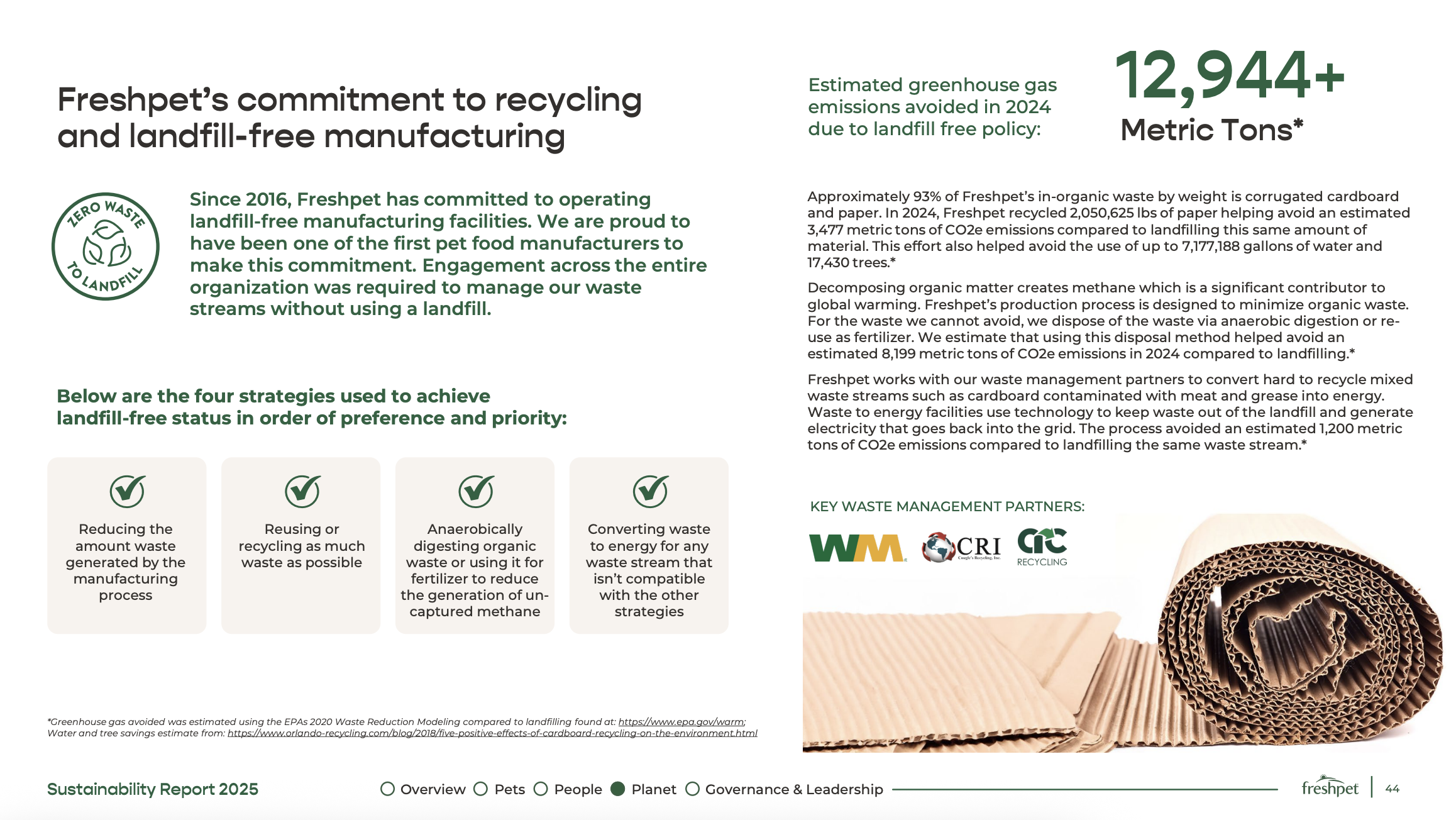 Our ongoing partnership with Freshpet is highlighted in their 2025 sustainability report. Click the button below to learn more about our involvement!